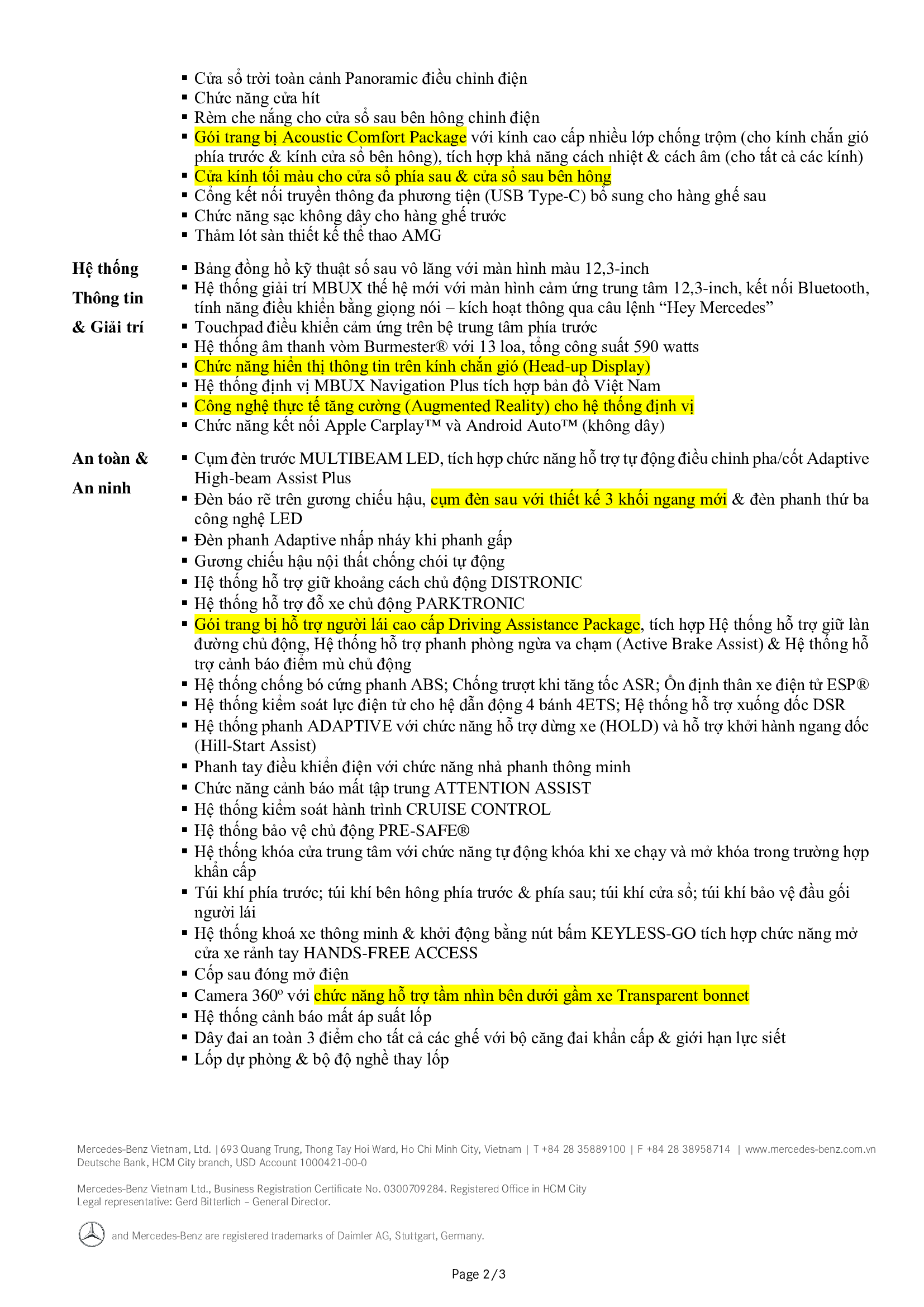 PRE-SAFE®, ATTENTION ASSIST, DISTRONIC, Hill-Start Assist, và nhiều túi khí bảo vệ toàn diện.