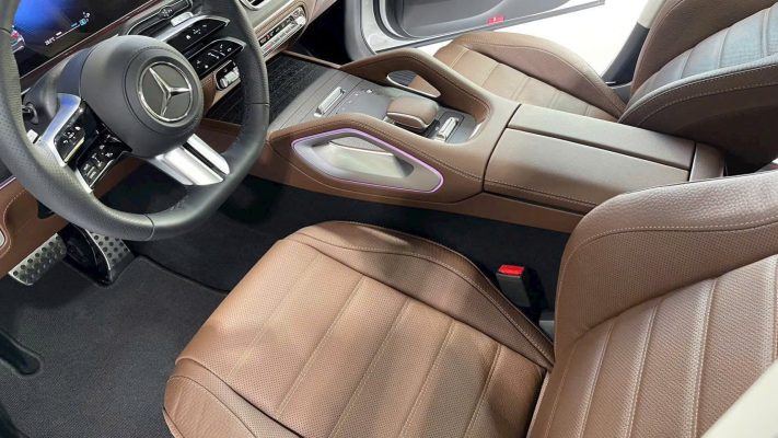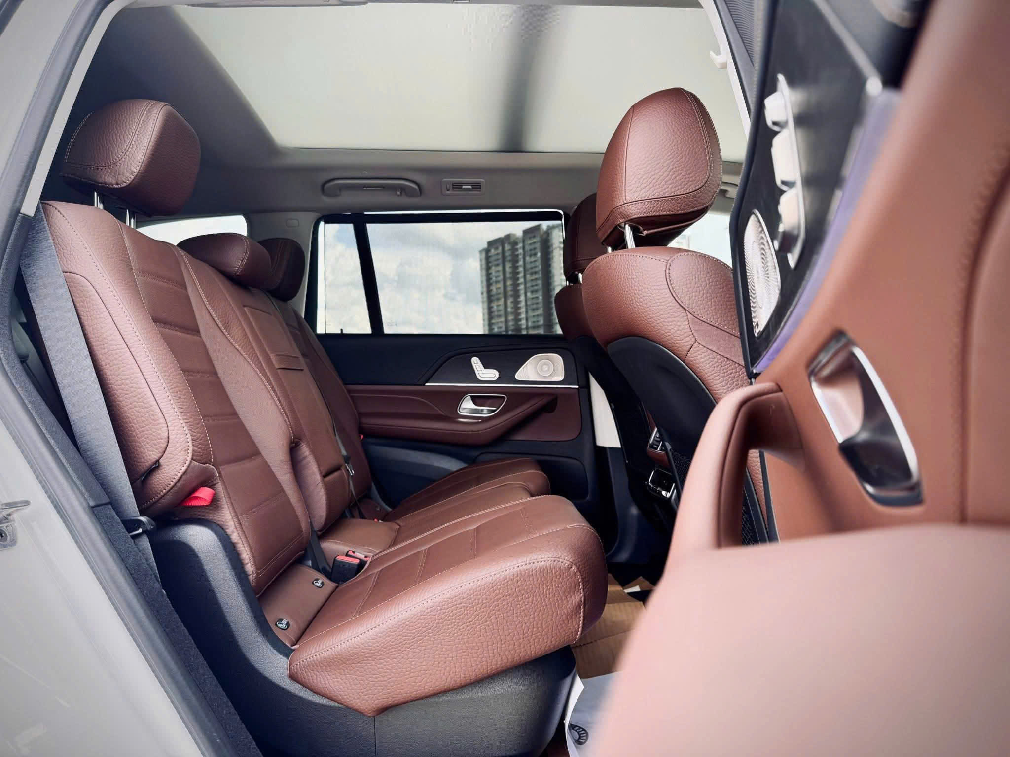 Bên trong GLS 450 FL 2025 là sự kết hợp giữa da Nappa cao cấp, gỗ sồi anthracite open-pore và đèn viền nội thất 64 màu đầy cảm xúc. Trang bị nổi bật: